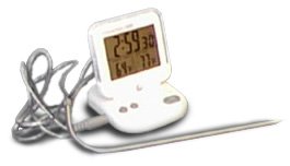 This digital thermometer has a probe with braided cable that will let you know the temperature of what you are cooking without having to open your oven or smoker. You can also set an automatic alarm that will sound at a pre-set temperature. Range 32°F to 396°F.