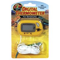 Temperature control can play an important part in the overall health and well-being of your reptile. This small digital thermometer will help you maintain the correct temperature for your pet. Can display a reading in either celsius or fahrenheit with a range of 10°F - 140°F (-23°C - 60°C). 39" Long temperature probe allows you to check the temperature virtually anywhere in your terrarium.