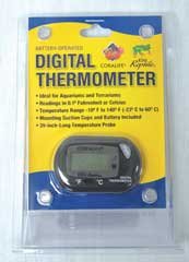 Like most products from Energy Savers, this thermometer is well made and dependable. Its accuracy and reliability is a plus in even the most sensitive system. I have used them extensively in marine tank set-ups with never a problem. The thermometer sits or hangs outside the tank and the digital readout is easily viewed. Only the probe is placed within the tank and is small enough to not be obtrusive. Well worth the money.